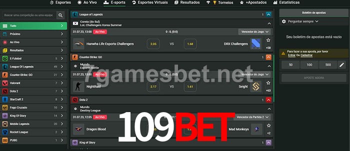 O 109bet oferece uma grande seleção de opções de apostas em e-sports com probabilidades competitivas